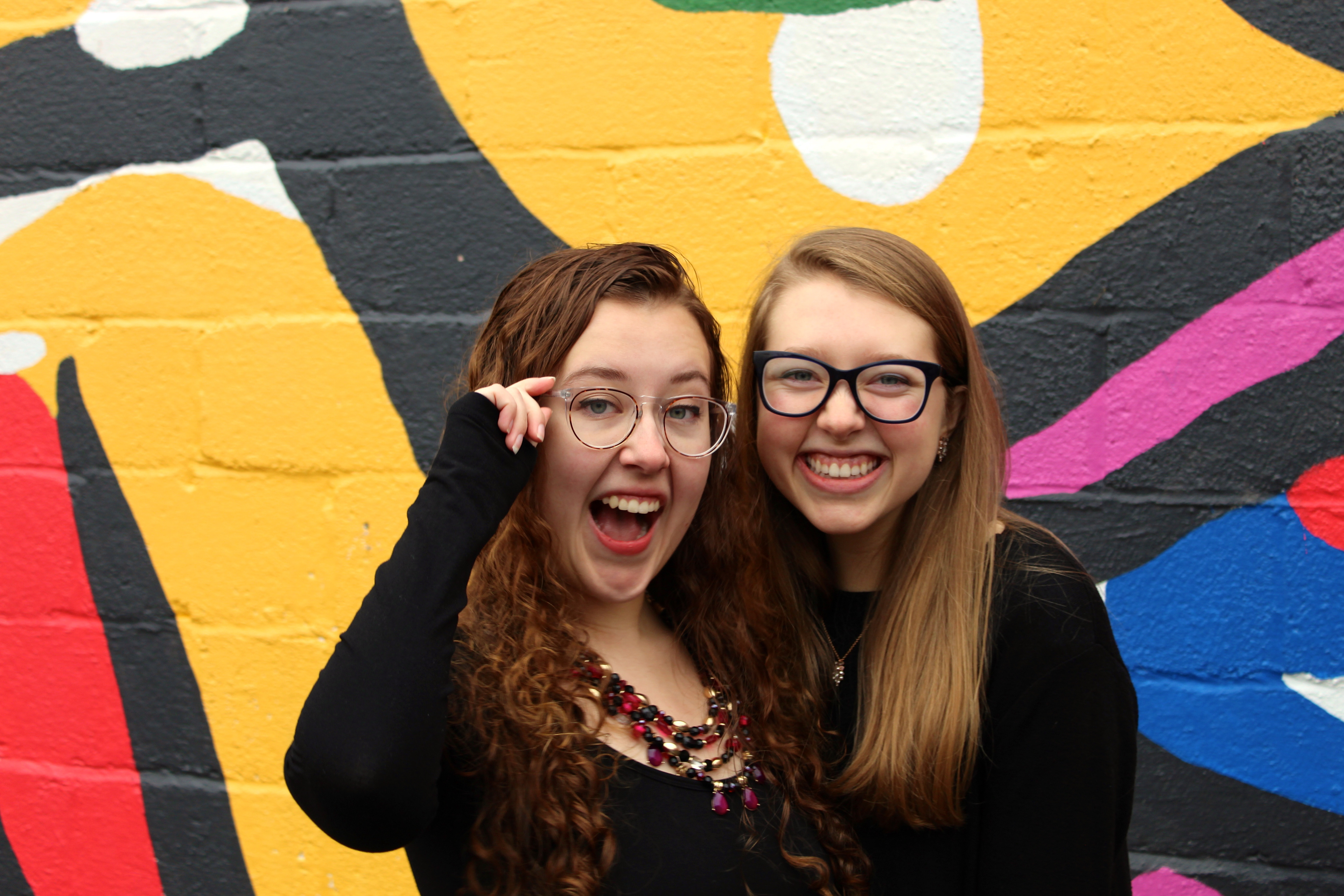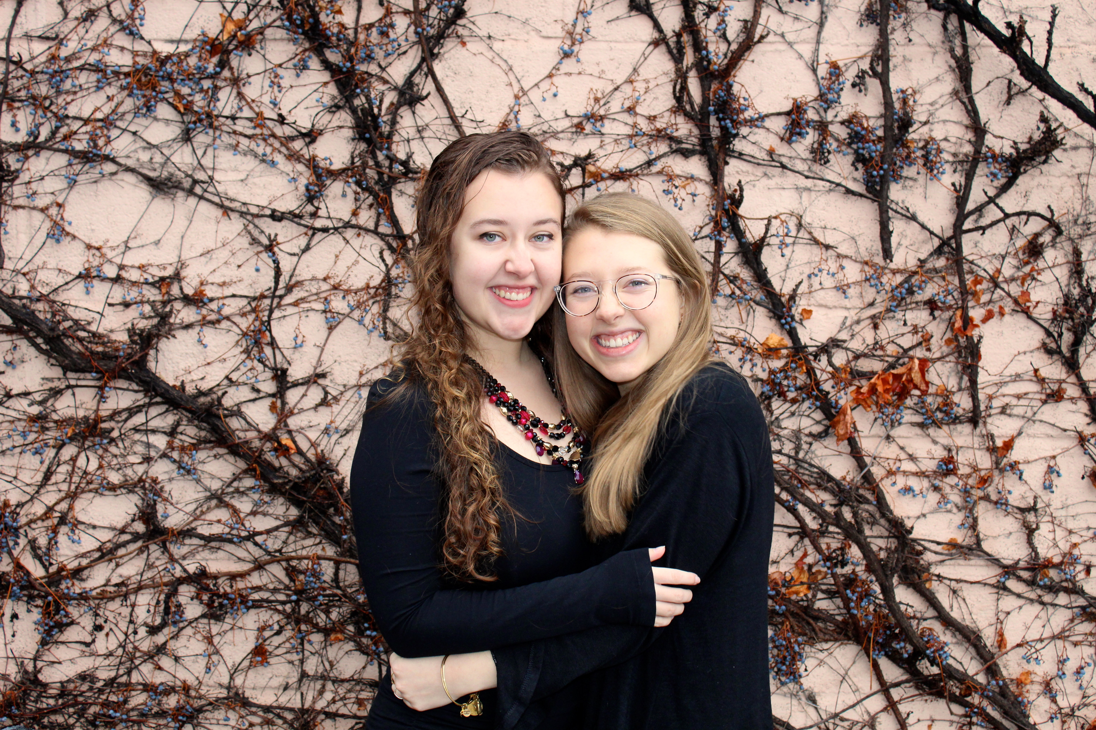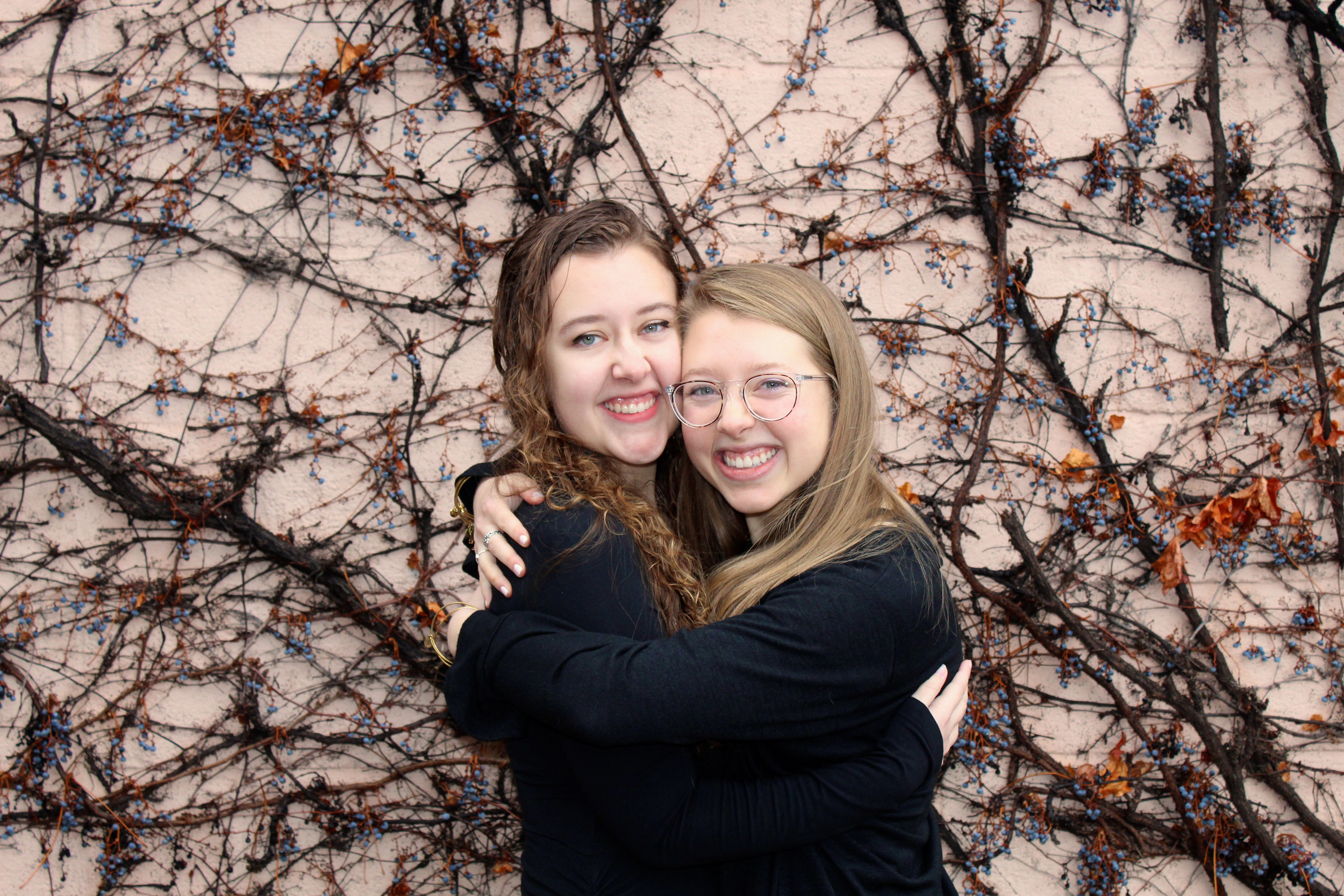 Sisters Caity and Emily Hoffman pose for their Christmas card